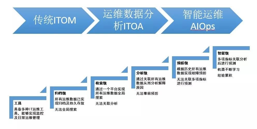 在Gartner最新的報告中指出,到 2019 年,全球25%的公司都將系統(tǒng)性部署實施 AIOps 平臺支持兩個及以上的主要 IT 運維功能。到2022年,40% 的大型企業(yè)會通過大數(shù)據(jù)和機器學(xué)習(xí)的能力來幫助甚至逐漸取代傳統(tǒng)運維中的監(jiān)控、服務(wù)臺及自動化流程。