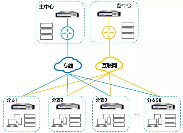 某單位下轄58個分支機構(gòu),內(nèi)部業(yè)務(wù)系統(tǒng)有郵件、OA、文件服務(wù)器、AD域、內(nèi)部管理系統(tǒng)、VoIP、視頻會議、流媒體、虛擬應(yīng)用和虛擬桌面等主要跑在MPLS線路上,分支機構(gòu)也有DSL線路提供訪問互聯(lián)網(wǎng)、備份線路和提供WIFI。為了保證低延遲,高帶寬等應(yīng)用系統(tǒng)網(wǎng)絡(luò)的可用性,有時必須要擴展WAN的帶寬,直接帶來的結(jié)果是成本的明顯提升。