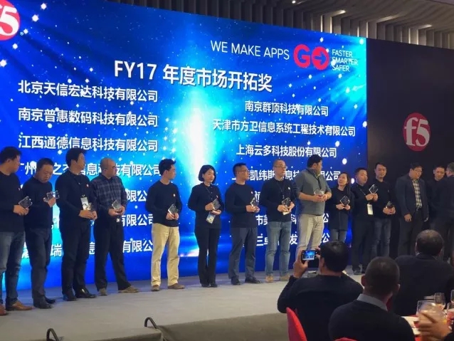 煙花三月,在寧波隆重舉辦的F5“知行云海,攜手共贏”為主題的中國合作伙伴高峰論壇會議上,作為F5大中國區(qū)銀牌合作伙伴的南京普惠數(shù)碼科技有限公司憑借自身實(shí)力,通過2017年度在應(yīng)用交付市場開拓的突出貢獻(xiàn),連續(xù)第三次獲得“F5 年度市場開拓獎(jiǎng)"。